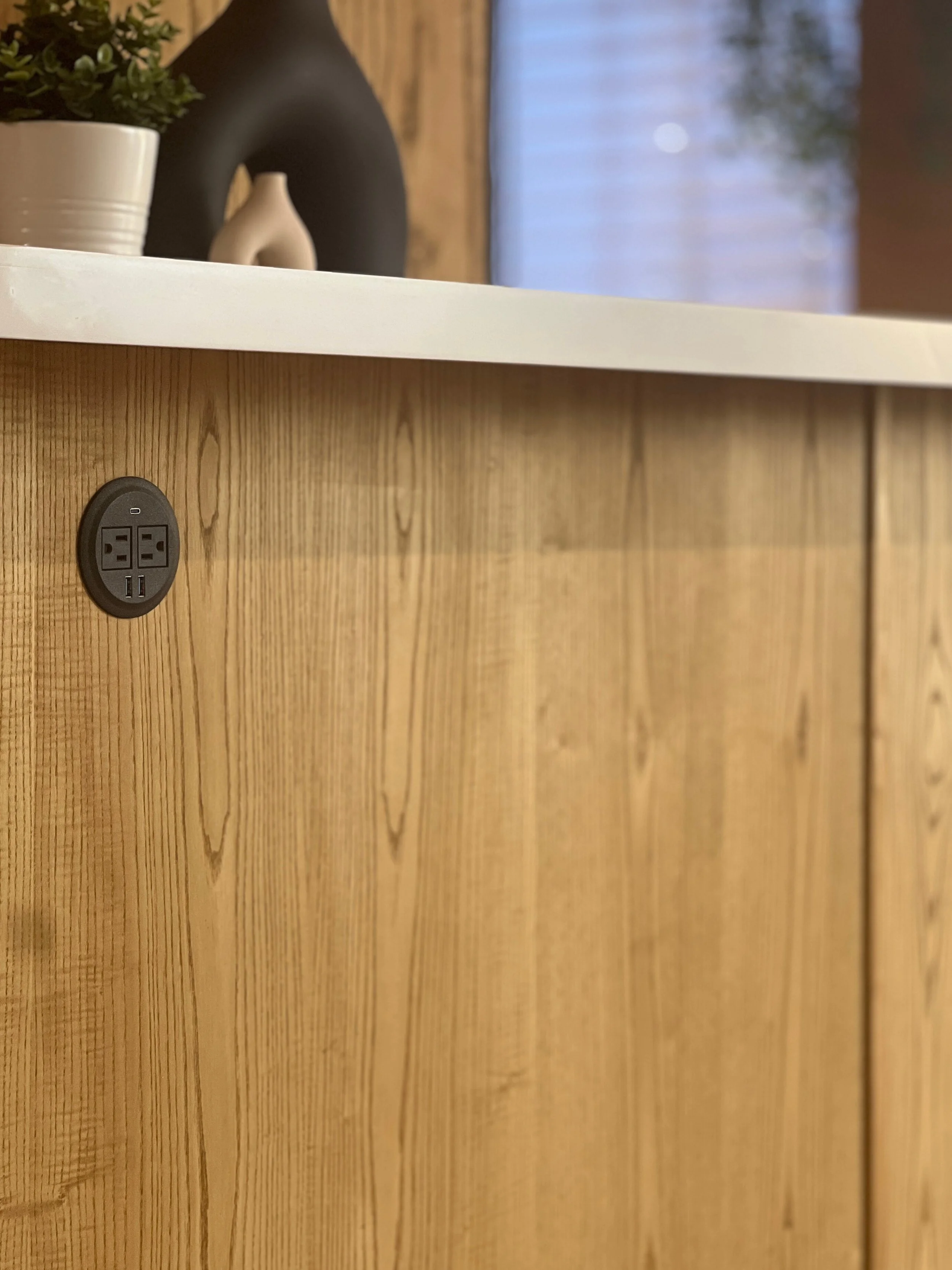 Nos solutions sont agrémentées d’intégrations telles que des ports USB, des prises de courant et de l’éclairage.