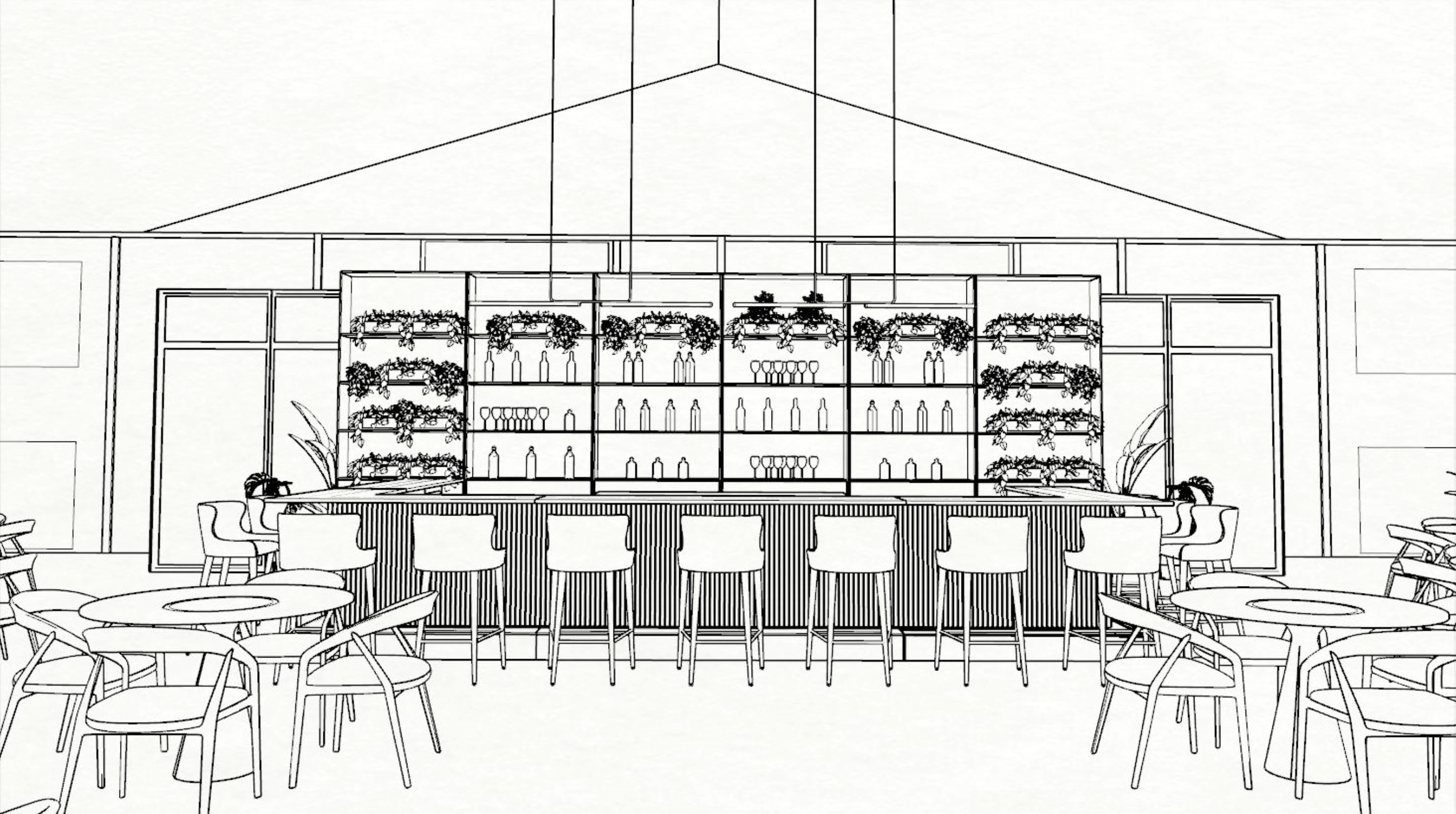 L'espace est agrémenté d'un choix illimité de finitions, notamment différentes essences de bois, de métal, de béton et de pierre composite.
